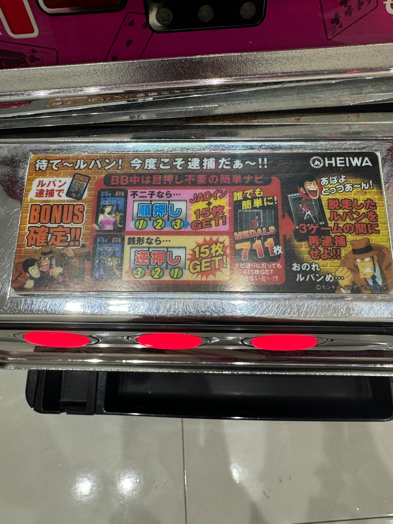 主役は銭形 不二子パネル スロット コイン不要機 実機 パチスロ実機 オリンピア